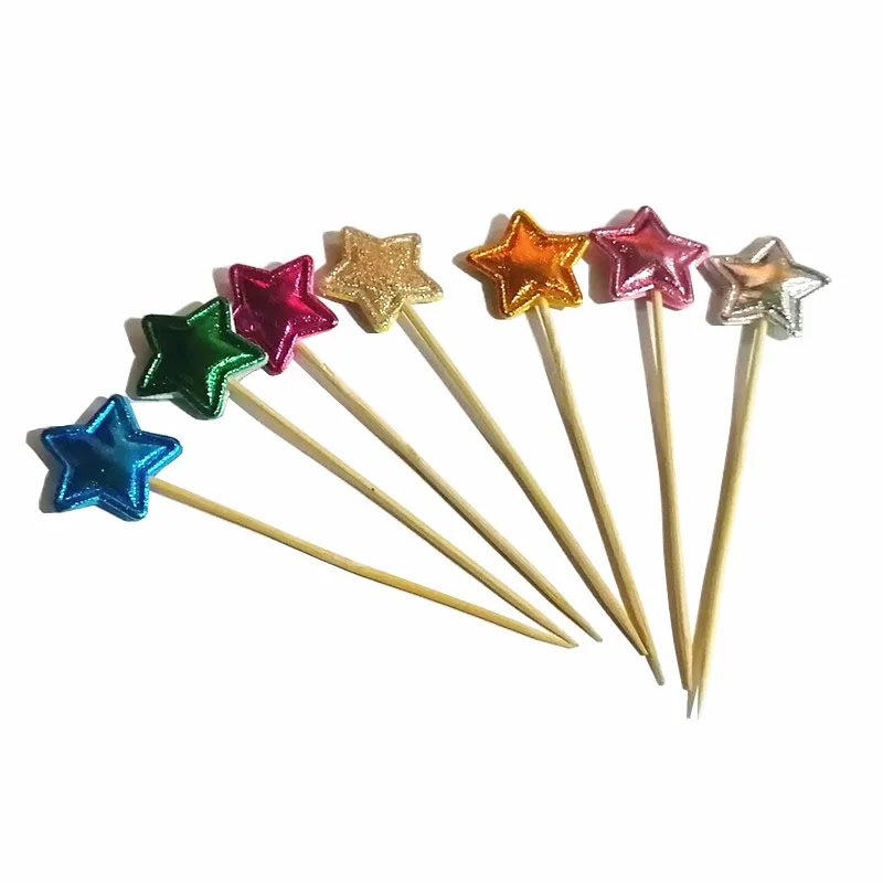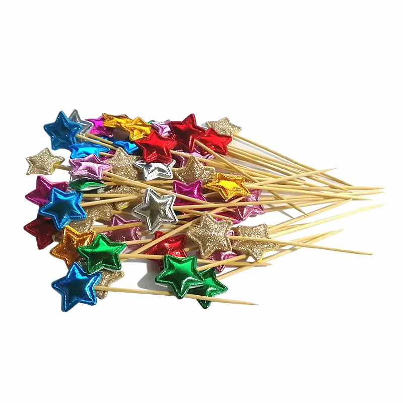 50 Pcs Stars Disposable Party Tableware Bamboo Forks Wedding Supplies Buffet Fruit Dessert Sticks Cupcake Toppers Cocktail Picks