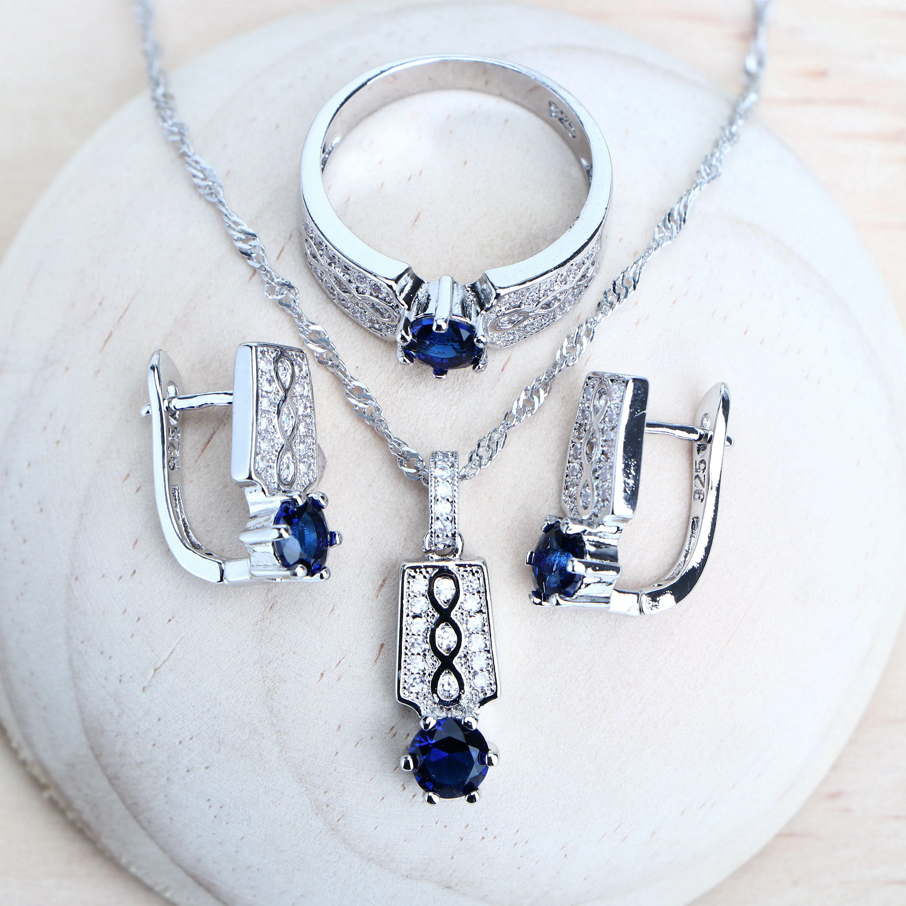 925 Sterling Silver Bridal Costume Zirconia Jewelry Rings Earrings Bracelet Pendant Necklace