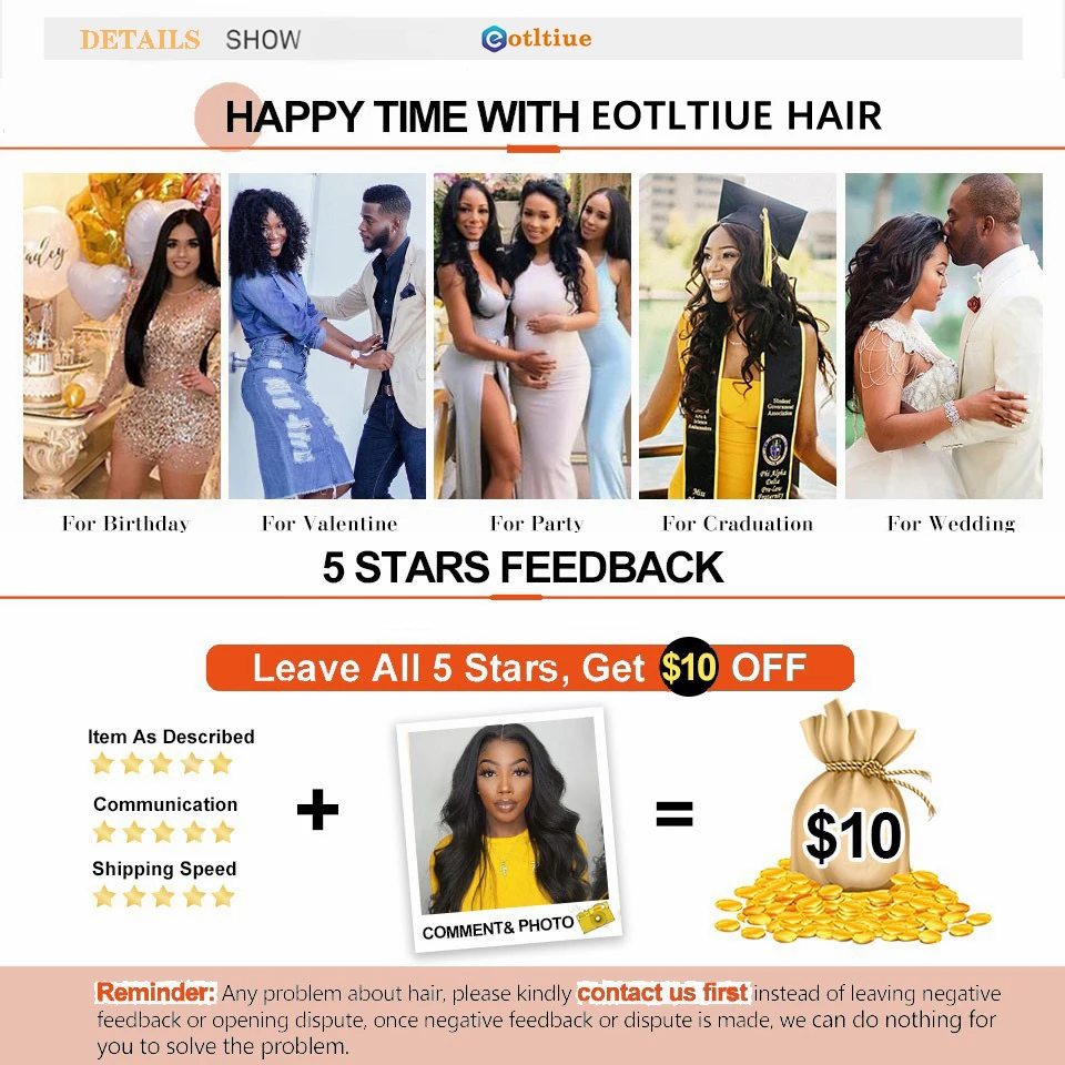 Monitor Reason: Because the colors on the Monitors of different mobile phones and computers are different, we will use the displays of Apple mobile phones and computers as the standard, and try to show the pictures of the products as true as possible. But even so, we cannot guarantee that the color of your hair after receipt will be exactly the same as when you purchased it.