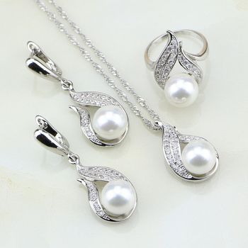925 Silver Jewelry White Pearl Cubic Zirconia Jewelry Set