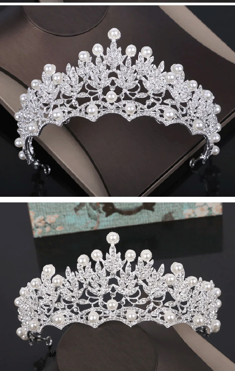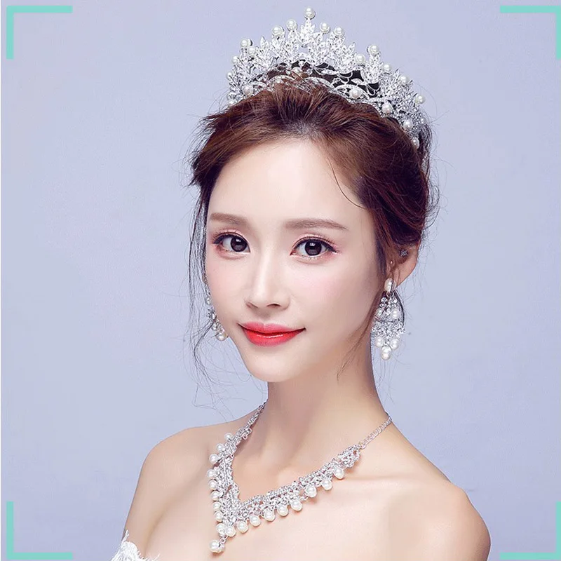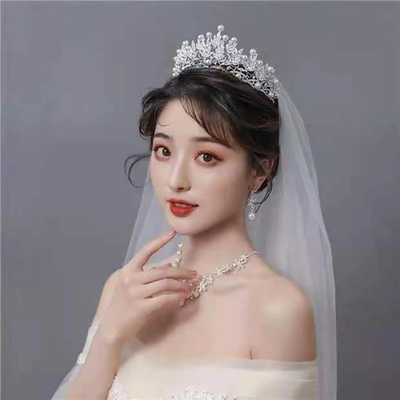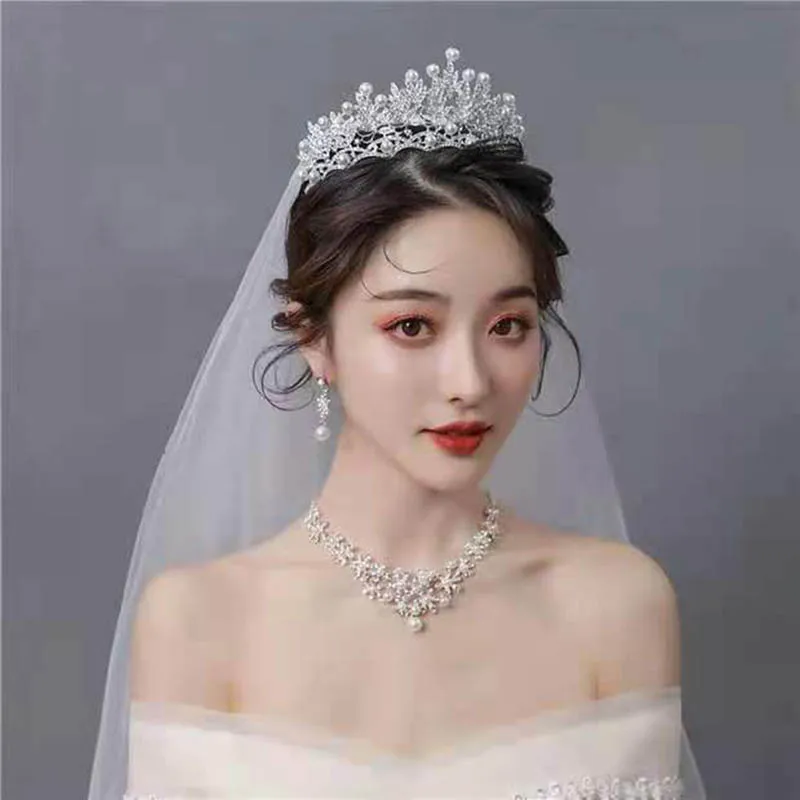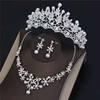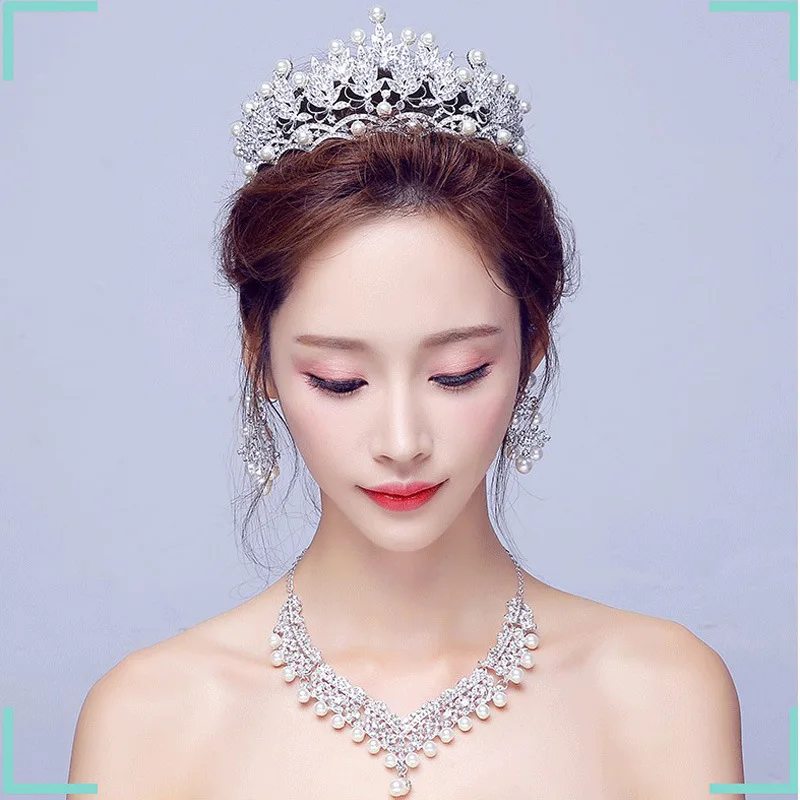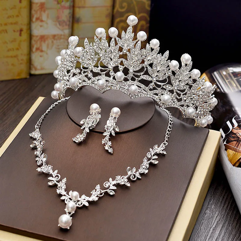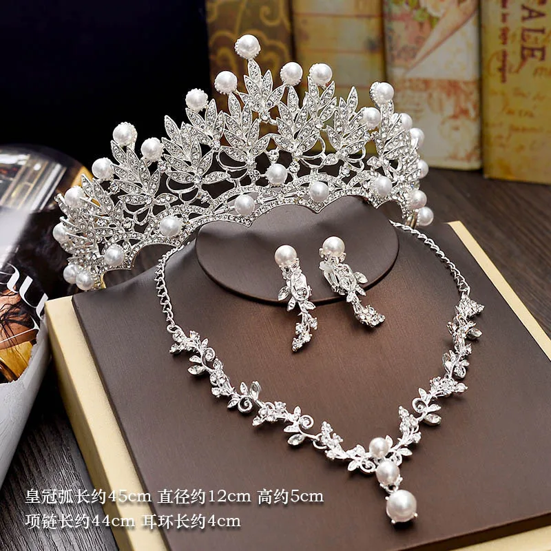 Crystal Bridal Jewelry Sets Pearl Necklace Earrings Crowns Sets