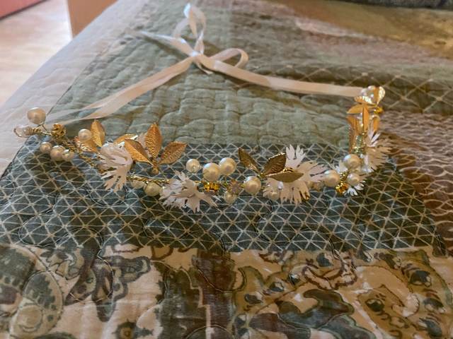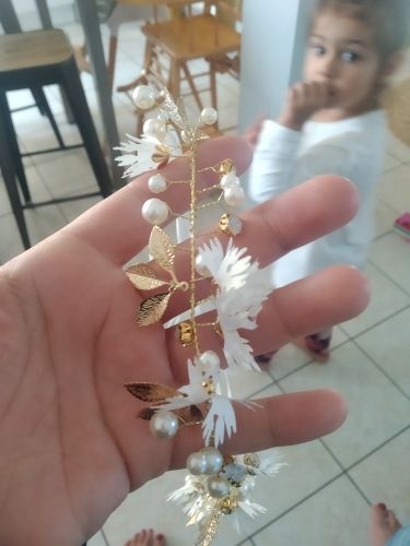 Beautiful, just as the photo. Very fast delivery. Silver looks more sophisticated than gold but it’s your choice. The flowers are very little so be careful if you want something that really pops up.