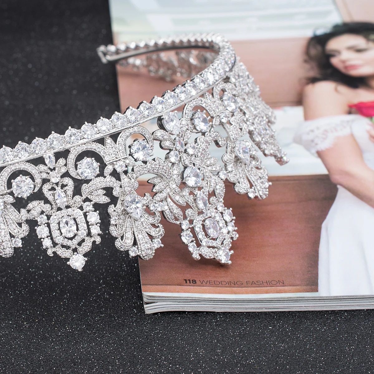 Description:High Quality Tiaras,Made by Micro-Pave-Setting and plating with real platinum,