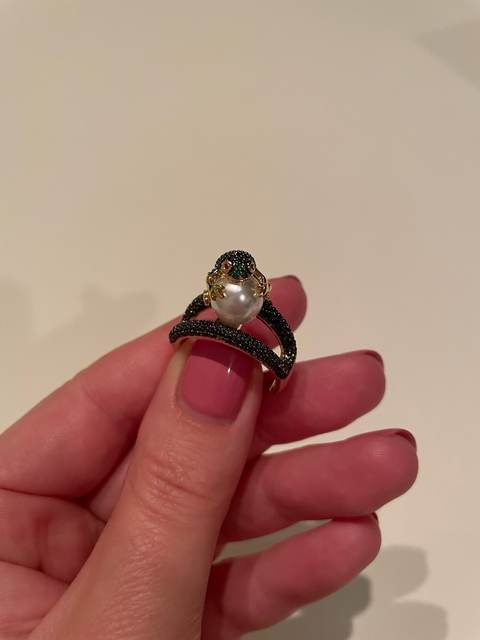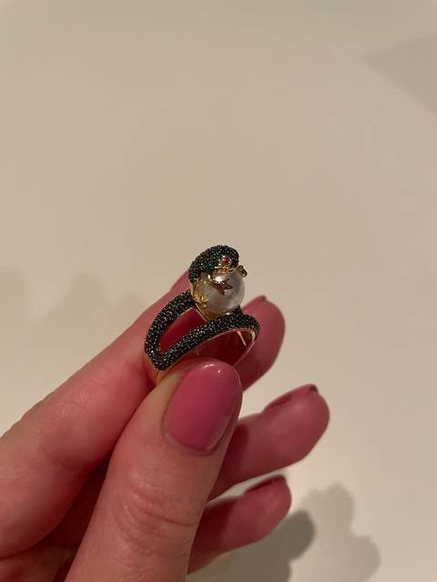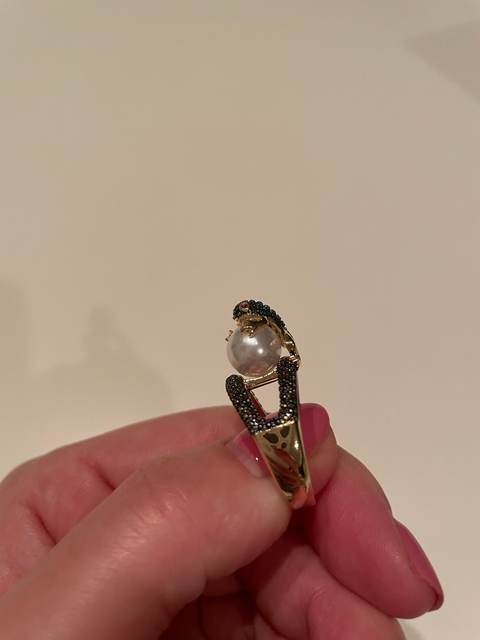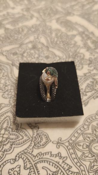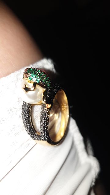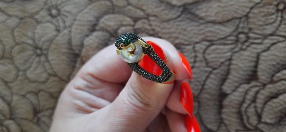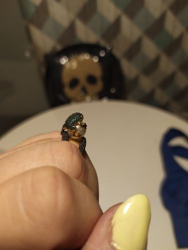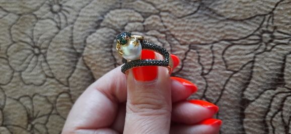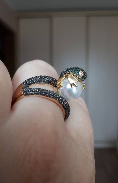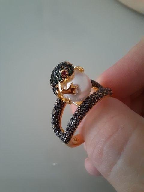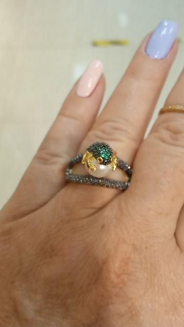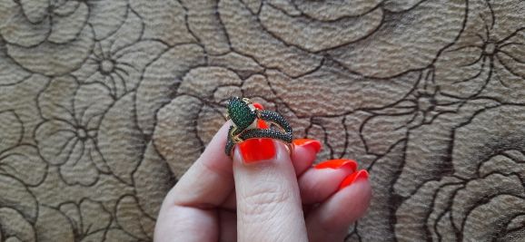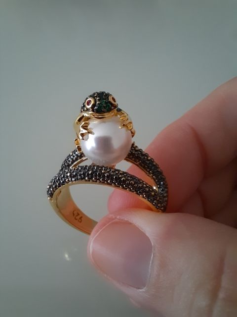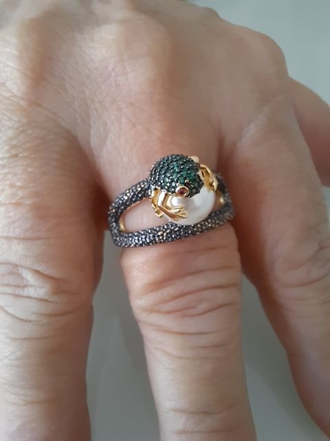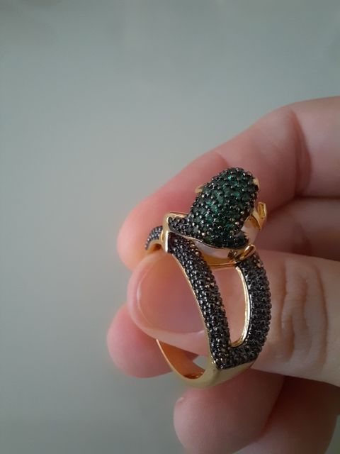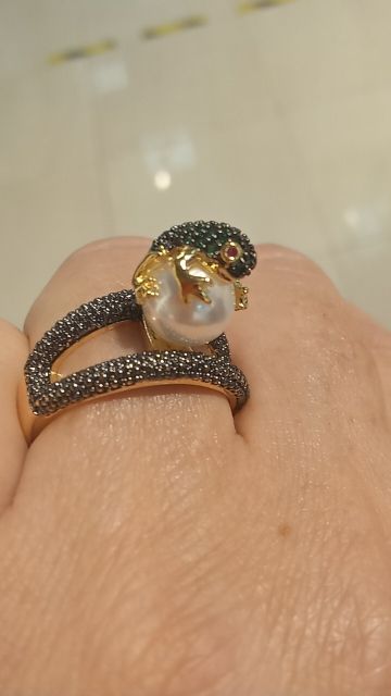 Огонь! Красота! Блестит! Лягушка маленькая, но все детали просматриваются, даже глазки малинового цвета и пальчики на лапках. Кольцо возвышается, но громоздким не смотрится. Рекомендую!