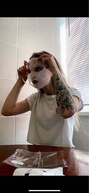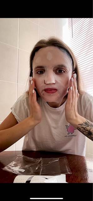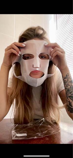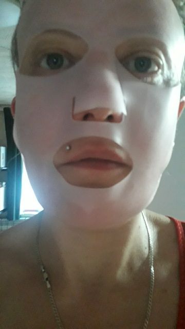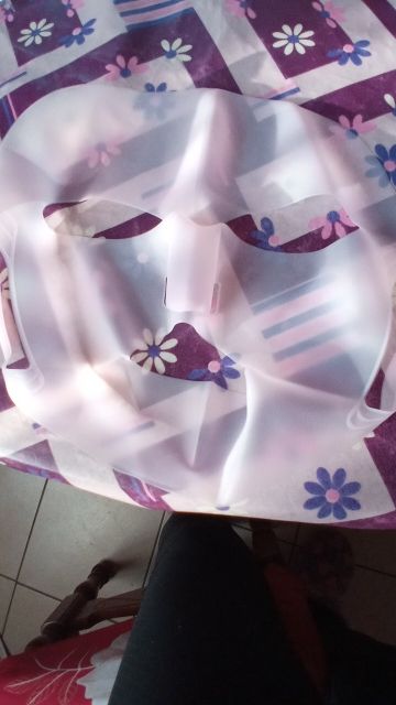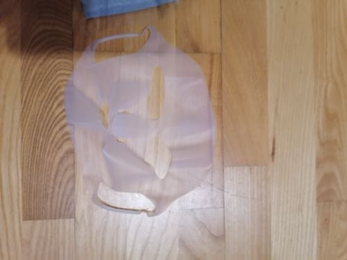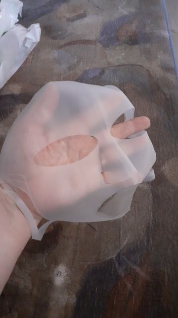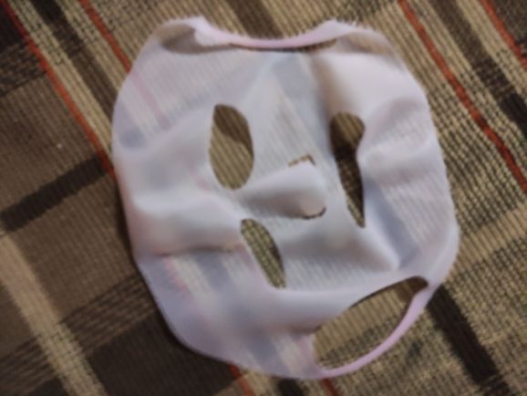 The mask is fine because it's a cover to throw your moisturizing mask on your face and put it on top so that it will sorber your skin better the moisturizing mask than you put on very good with water.